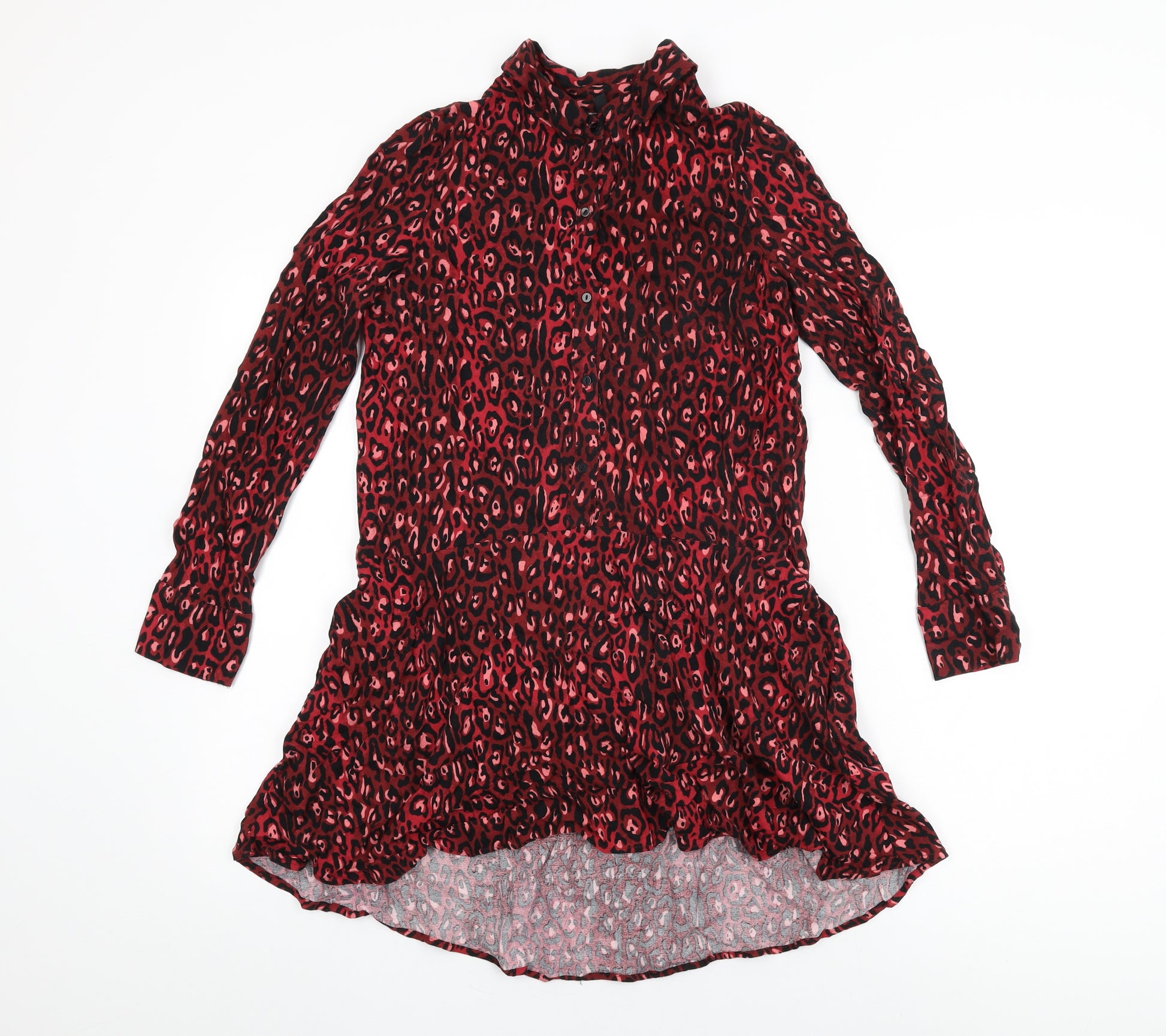 Womens Red Animal Print Viscose Basic T-Shirt Size S Collared