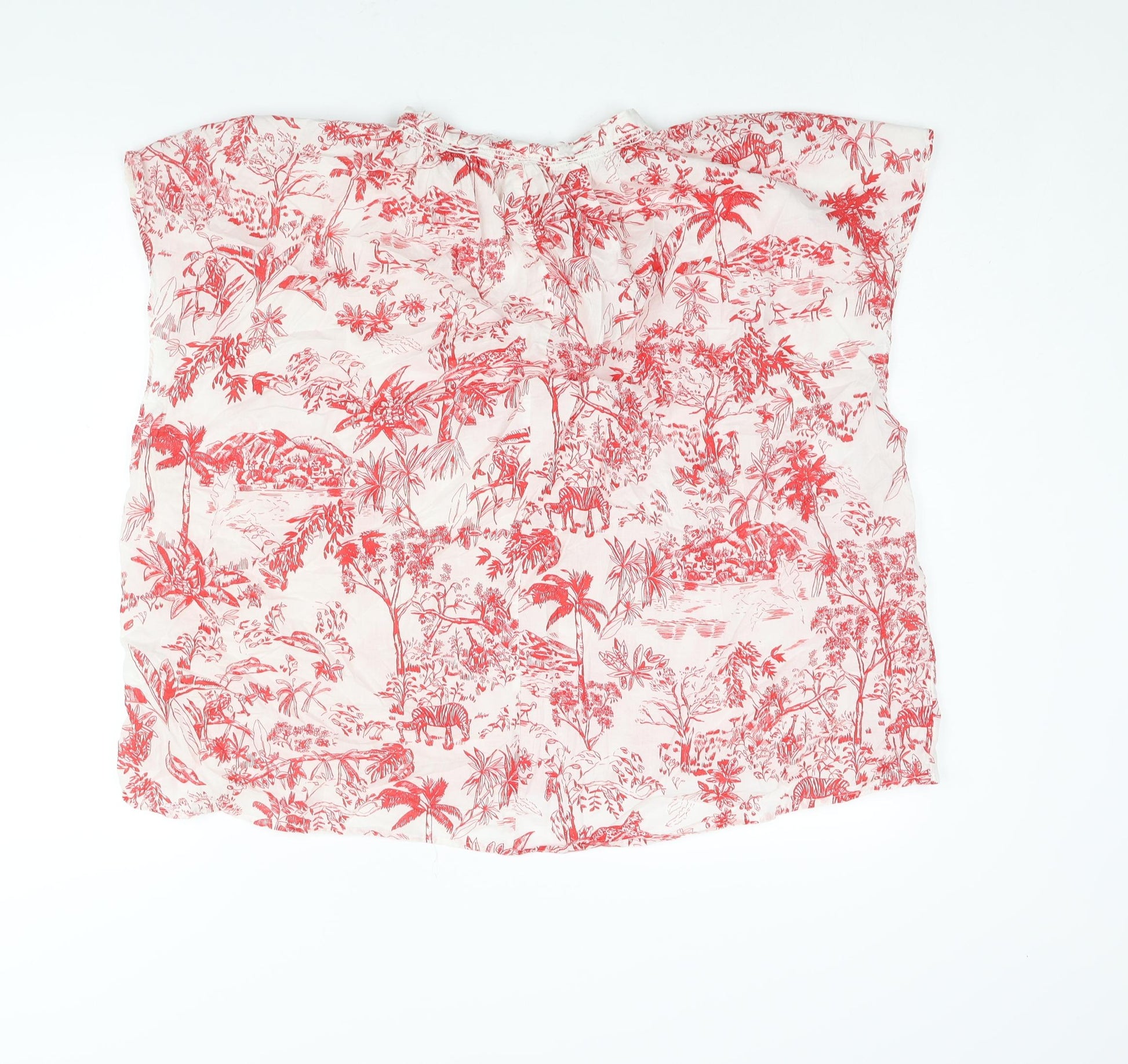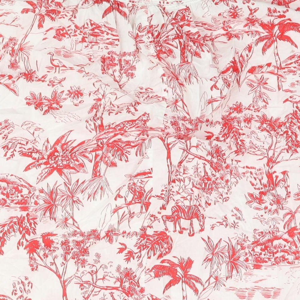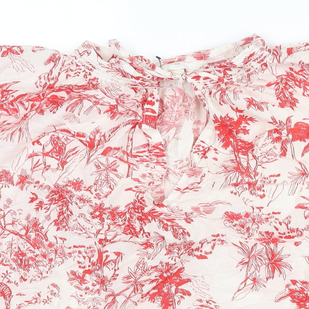 Womens Red Geometric Cotton Basic Blouse Size XL Mock Neck - Keyhole Neck