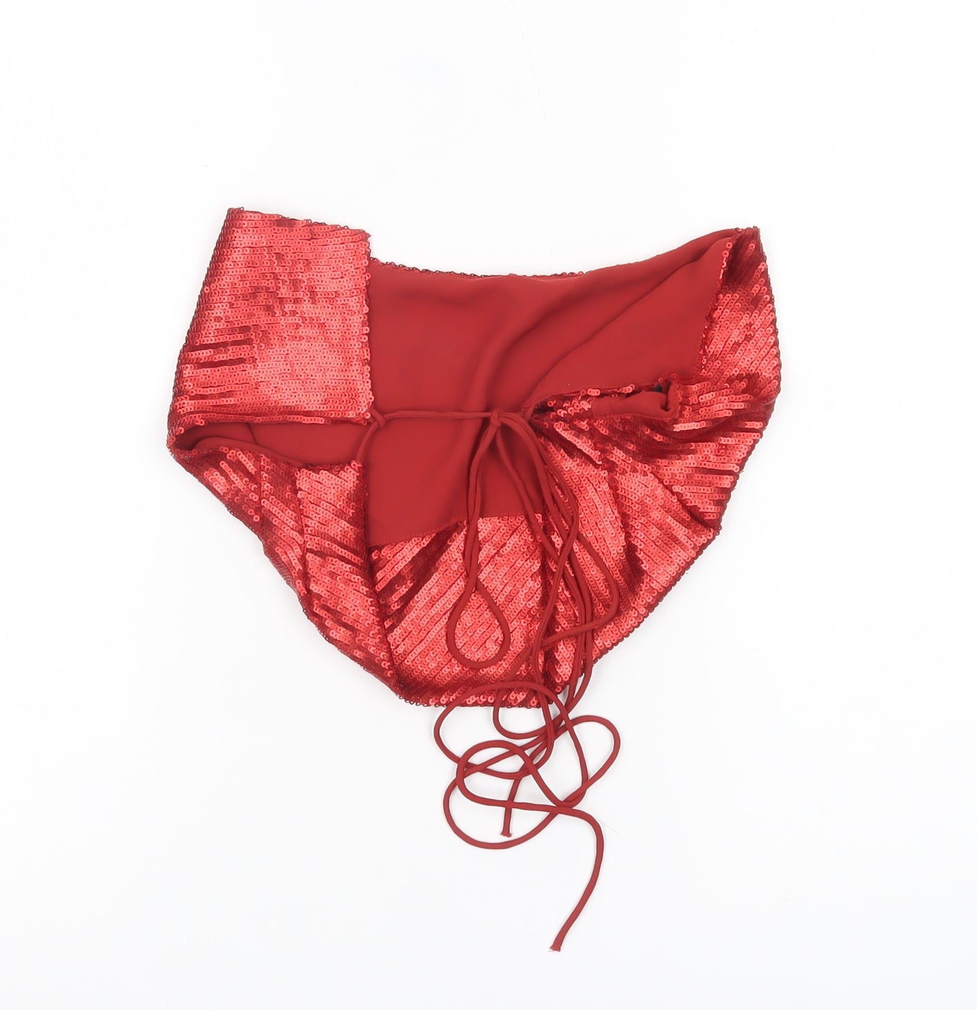 Elevate your evening wardrobe with this striking Zara women’s camisole top, perfect for adding a dose of glamour to any occasion. Designed in a vivid red hue, this sleeveless tank-style top combines modern simplicity with dazzling detail. Its slim fit and lightweight woven construction ensure comfort while keeping the silhouette sleek and flattering. The piece sparkles thanks to its all-over sequin accents, catching the light beautifully and offering a statement style for parties, cocktail events or nights out. Featuring delicate spaghetti straps and a scoop neckline, this camisole adds a touch of femininity to your outfit, making it an ideal partner for tailored trousers, skirts or high-rise jeans. The tie closure detail at the back enhances adjustability and comfort while adding further character to the design. Crafted from 100% polyester, the top offers durability while maintaining its featherlight feel, perfect for warm spring and summer wear. Effortlessly versatile, it can be styled formally with a blazer and heels, or worn more casually with denim and flats for a chic off-duty look. Although pre-owned, the item remains in excellent condition with no visible flaws, ensuring a stylish addition to your wardrobe without compromise. Easy to maintain with simple hand wash care, this camisole is a long-lasting, standout piece that will quickly become a wardrobe favourite. Whether you're attending a cocktail party, heading out for an evening out, or simply aiming to bring a shine to your everyday outfits, this Zara top effortlessly blends fashion and function. A great investment piece for anyone looking to make an impression while staying comfortable and on trend.