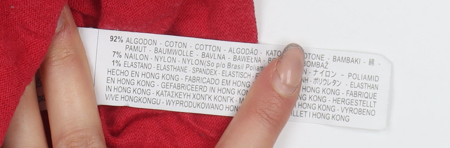 This vibrant red Zara top is a perfect addition to any wardrobe. Designed for women, this short sleeve top features a comfortable crew neck and a stylish raglan sleeve, offering a classic yet modern look. Made from a high-quality blend of materials including 92% cotton, 7% nylon, and 1% elastane, it ensures both comfort and durability. Suitable for multiple occasions, the solid pattern makes it easy to pair with different styles. Though the top shows slight signs of wear, it remains in excellent condition without any tears. Ideal for casual or semi-formal wear, this pullover top is machine washable for effortless care, making it an essential piece for all seasons. Snag this versatile garment while it lasts and enjoy a staple that combines fashion with functionality.