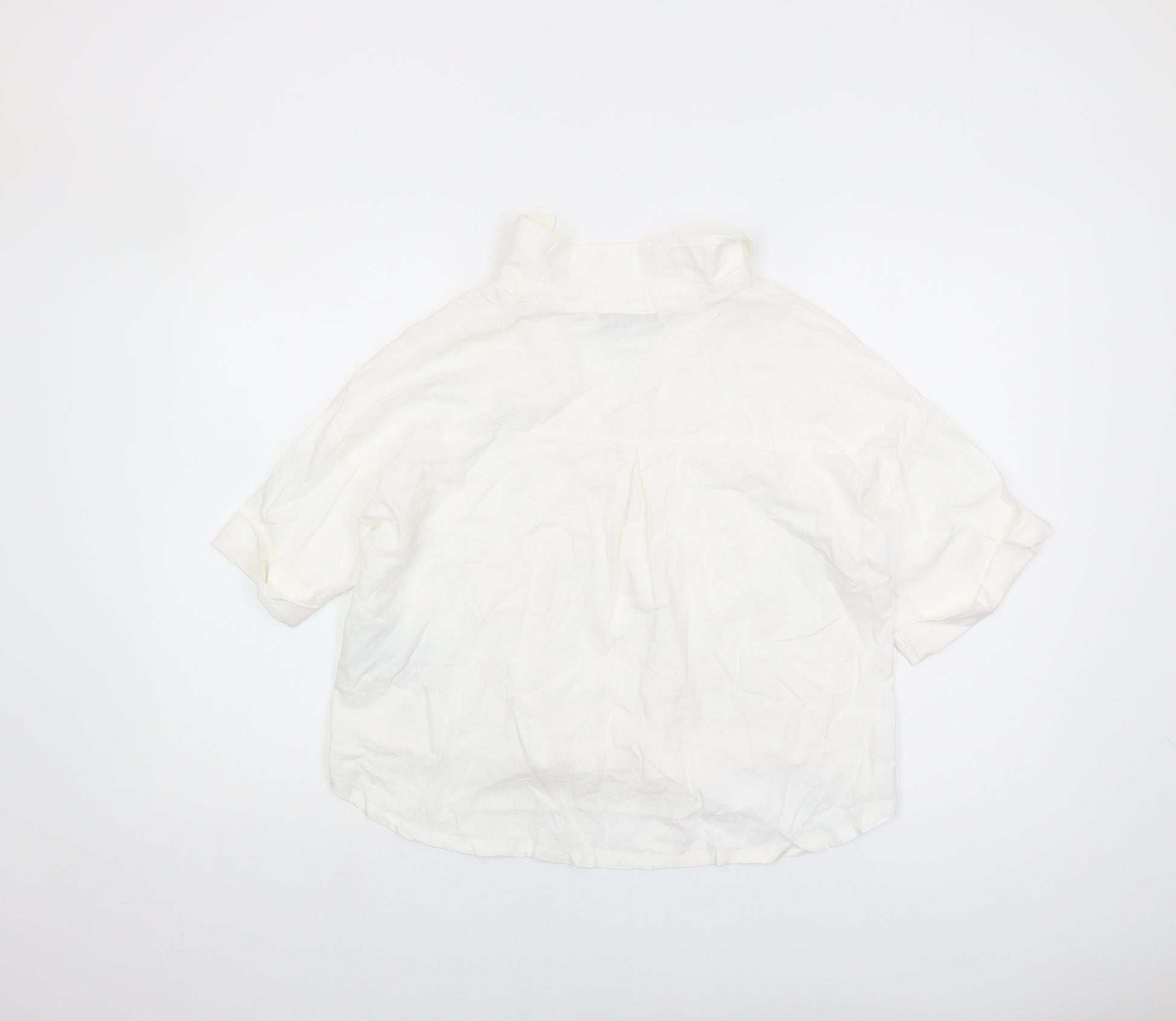 Women's White Collared Blouse, Size S, Casual Short Sleeve