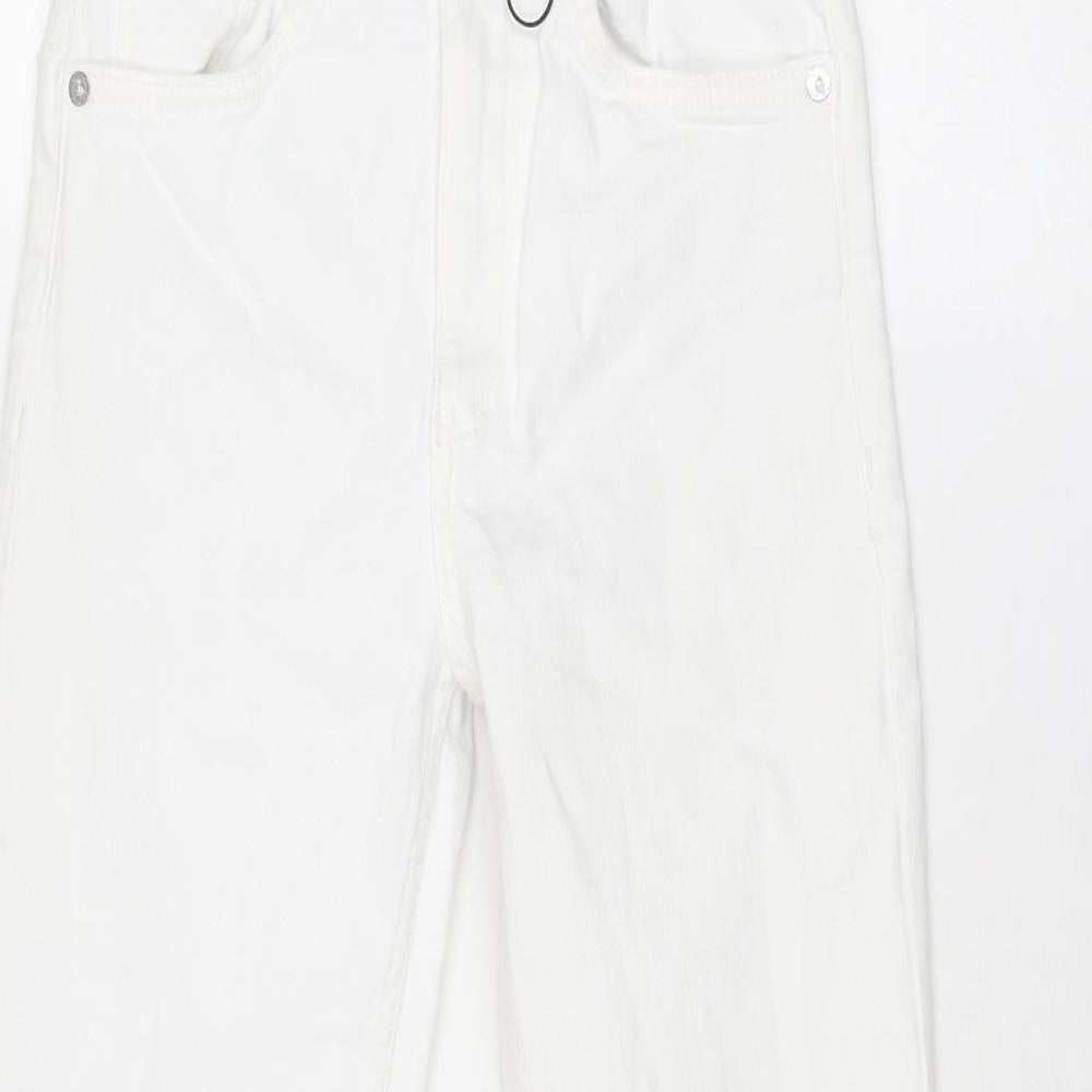 Womens White Cotton Bootcut Jeans Size 8 Regular Zip - Distressed Hems