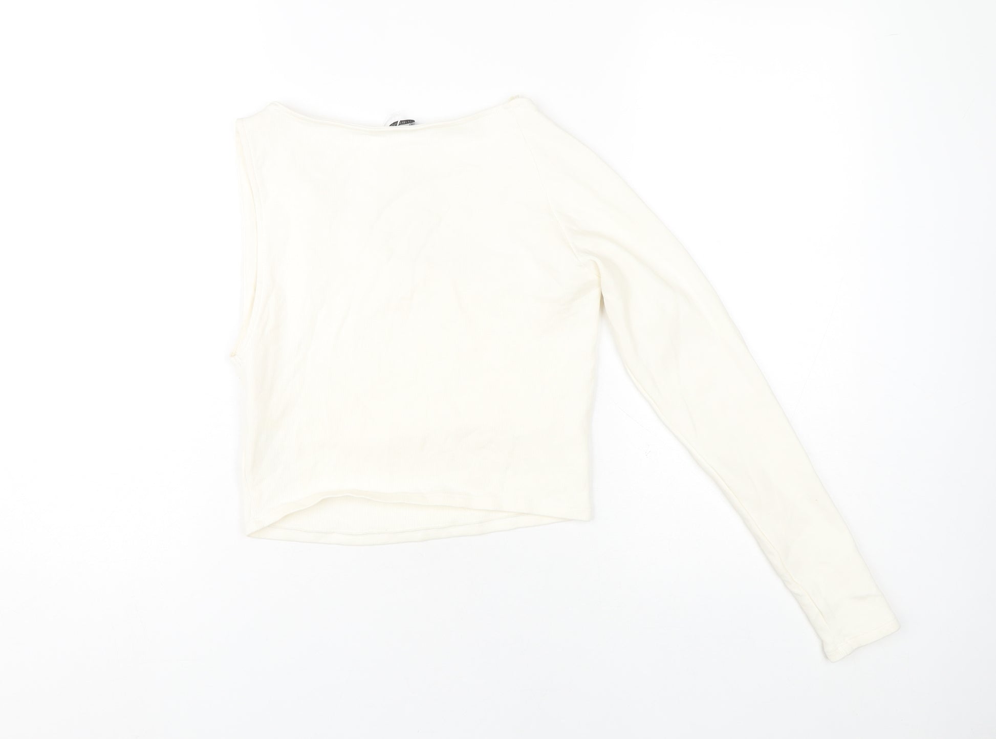 Step into style with this chic Zara women's top, beautifully crafted in a versatile solid white colour that pairs effortlessly with any wardrobe. Designed in a contemporary cropped style, this piece features an asymmetrical sleeve and a unique one-shoulder neckline, perfect for those looking to make a fashion statement. Made from a comfortable cotton and elastane knit, the fabric ensures breathability and flexibility, ideal for casual outings or a relaxed day at home. Its regular fit and size L caters to a variety of body shapes, offering both style and comfort. The minimalist design is free from distractions, allowing you to accessorize or layer as you wish, making it an essential piece for the sunny spring and summer seasons. Circle this as a staple in your collection that offers both modern aesthetics and a nod to casual fashion flair. Perfect for casual occasions, this top is also machine washable, making care easy and straightforward. Enhance your wardrobe with this stylish Zara cropped top that beautifully balances elegance with a touch of edge.