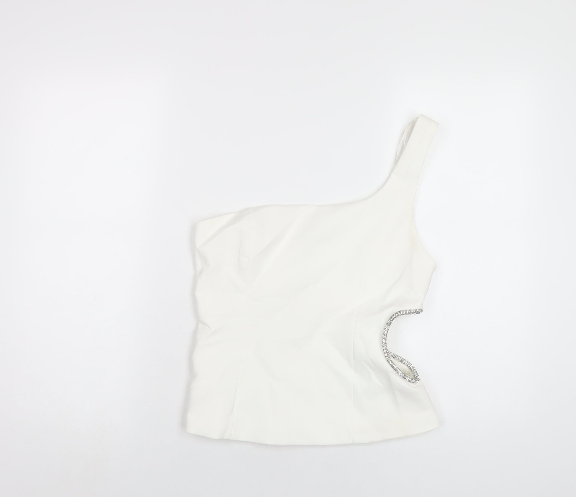 Womens White Polyester Basic T-Shirt Size M One Shoulder