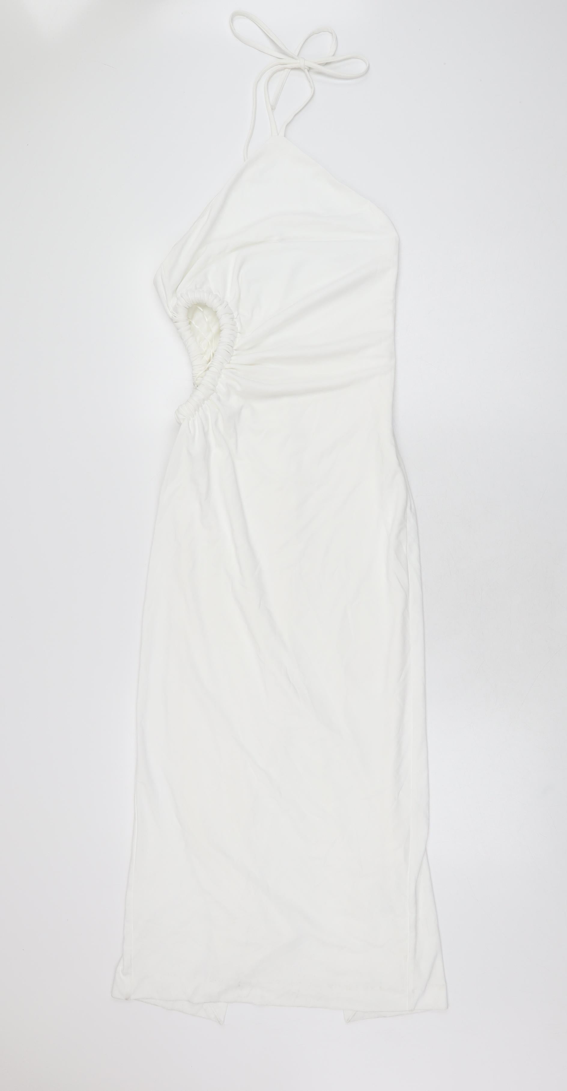 Womens White Polyester Bodycon Size S Halter Zip