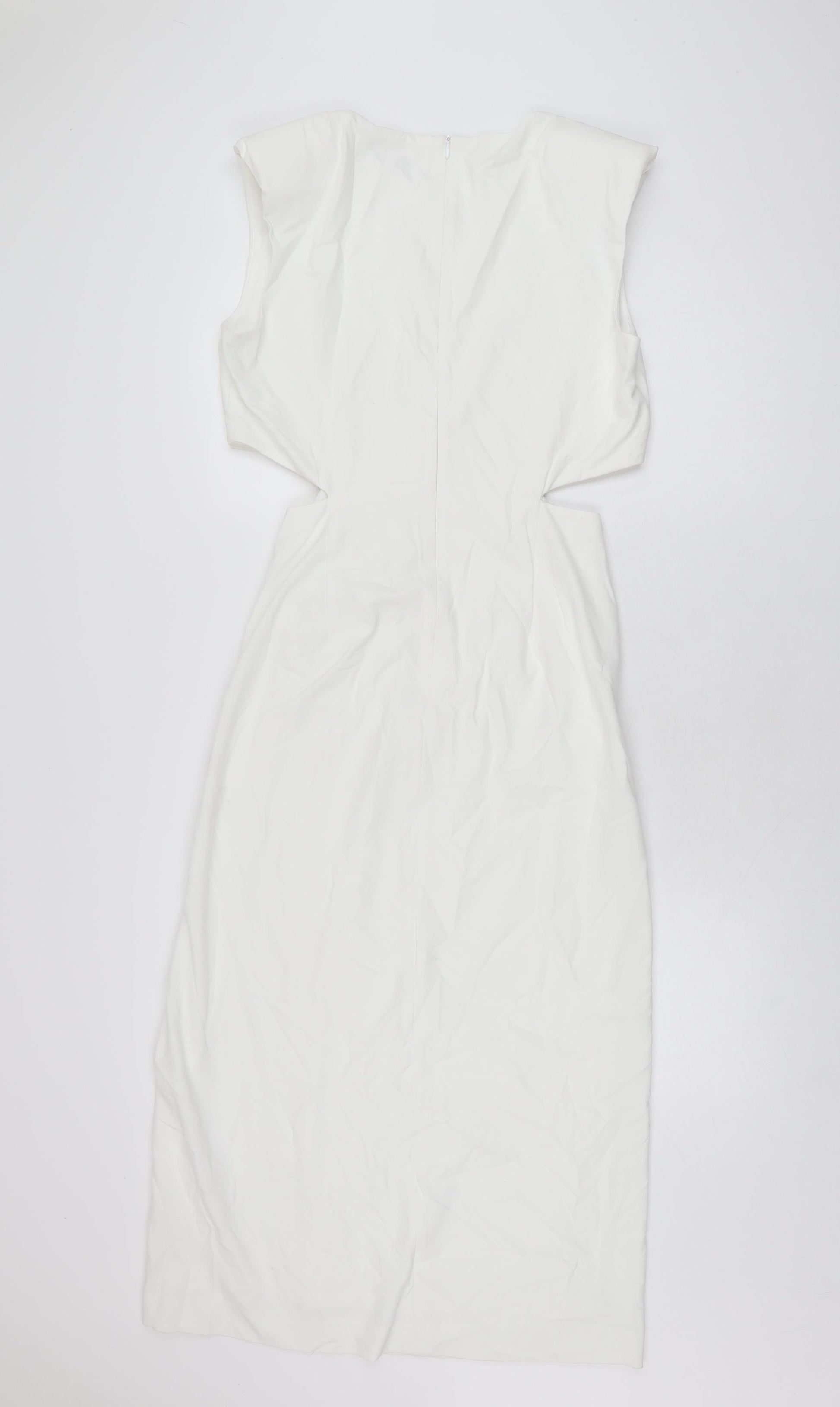 Womens White Polyester Bodycon Size S Round Neck Zip