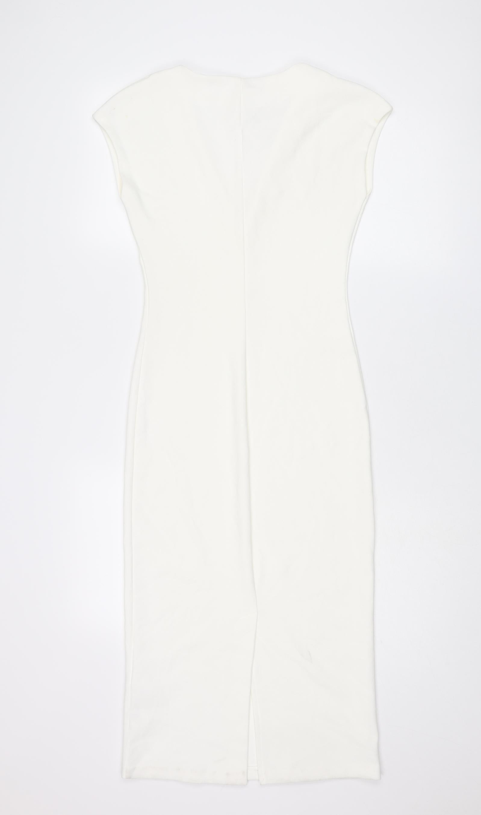 Womens White Polyester Bodycon Size S V-Neck Pullover