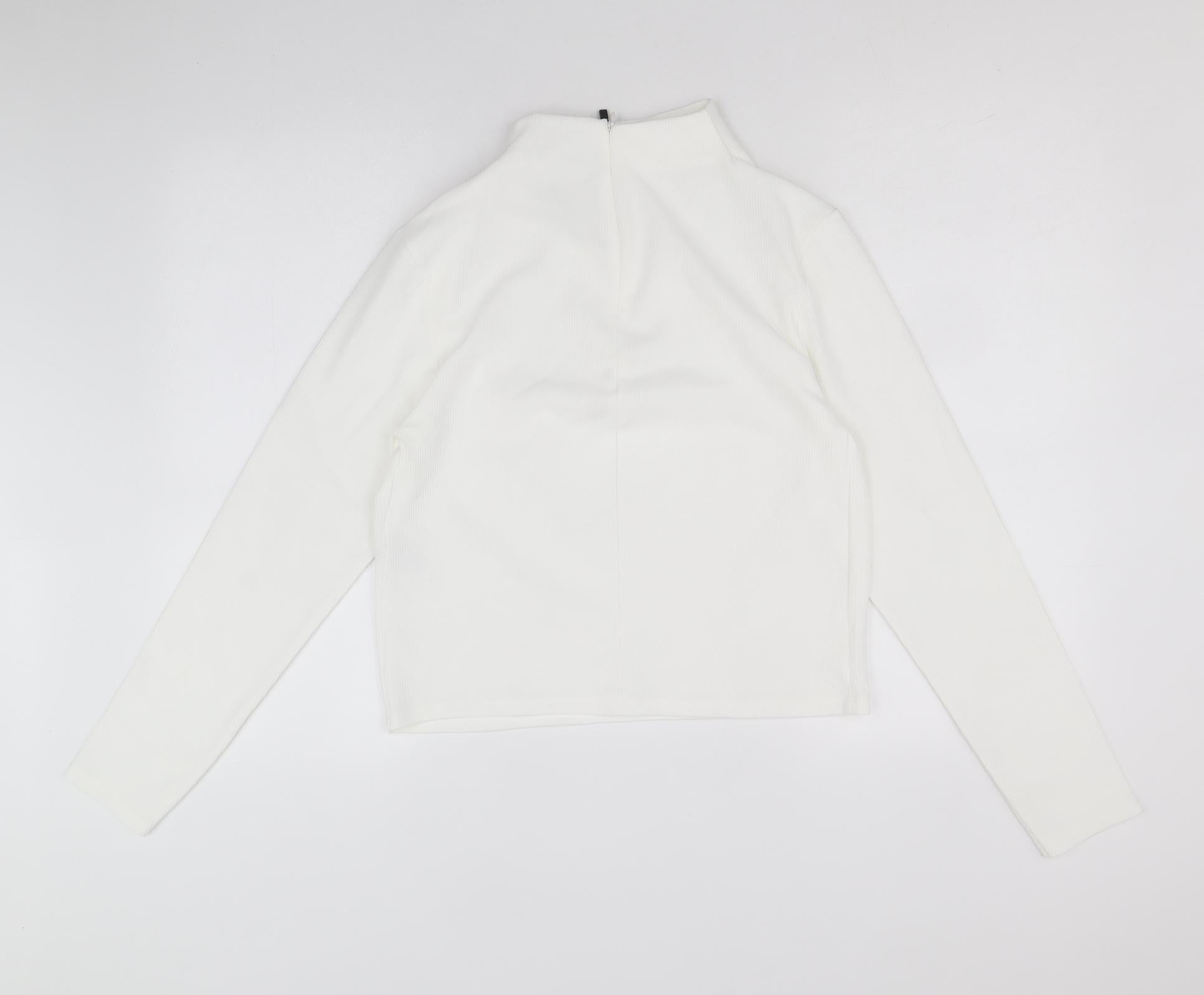 Womens White Polyester Cropped T-Shirt Size S Mock Neck
