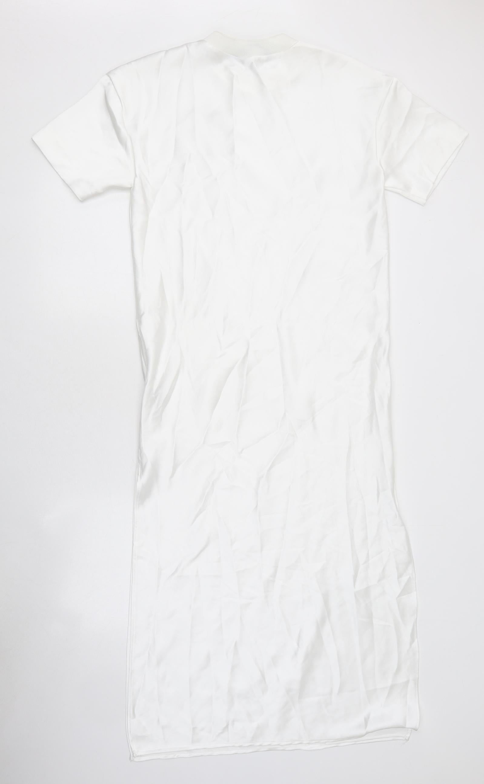 Womens White Polyester T-Shirt Dress Size XS Crew Neck Pullover