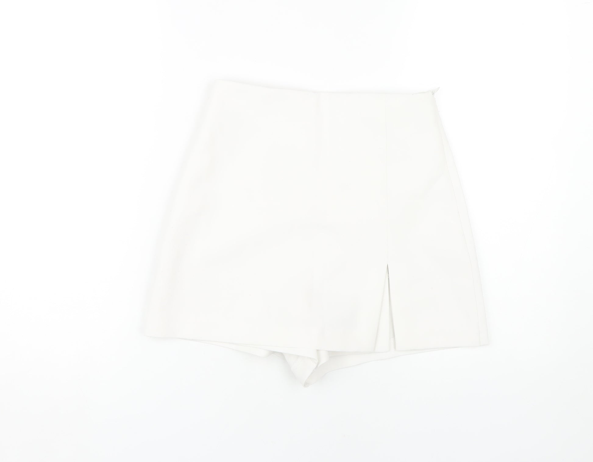 Elevate your wardrobe with this chic ZARA skort, perfect for the modern woman seeking style and functionality. Crafted in a sleek white, this skort offers the sophisticated appearance of a skirt with the comfort and practicality of shorts. Ideal for warm days or as a versatile addition to your seasonal ensemble, its short length is perfect for showcasing your legs while maintaining an elegant silhouette. Designed in a skort style, this piece is part of ZARA's contemporary collection, combining trendiness with timeless appeal. It’s unadorned with additional patterns, making it an excellent canvas for pairing with bold tops or accessories, ensuring versatility for multiple occasions. Wear it for casual outings, or dress it up for more formal affairs. Its rich fabric displays no visible wear, promising a fresh look every time you wear it. Whether you're off to work, a social event, or simply enjoying a day out, this skort is an excellent choice for maintaining style without sacrificing comfort. Its sleek design is geared towards modern ladies looking to enhance their wardrobes with a signature piece from ZARA. Available in size XS, designed for regular fit, this piece is an elegant addition to any clothing collection. While specific material details and care instructions are not visible, the condition appears pristine, ensuring that it looks brand new without tags. Pair this skort with a variety of tops and shoes to showcase your unique style. Embrace the fusion of fashion and comfort with this sophisticated piece from ZARA.