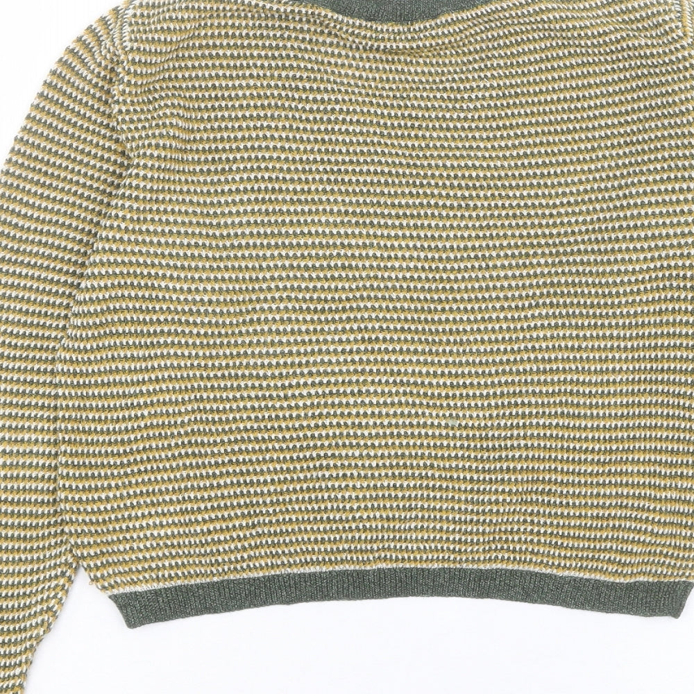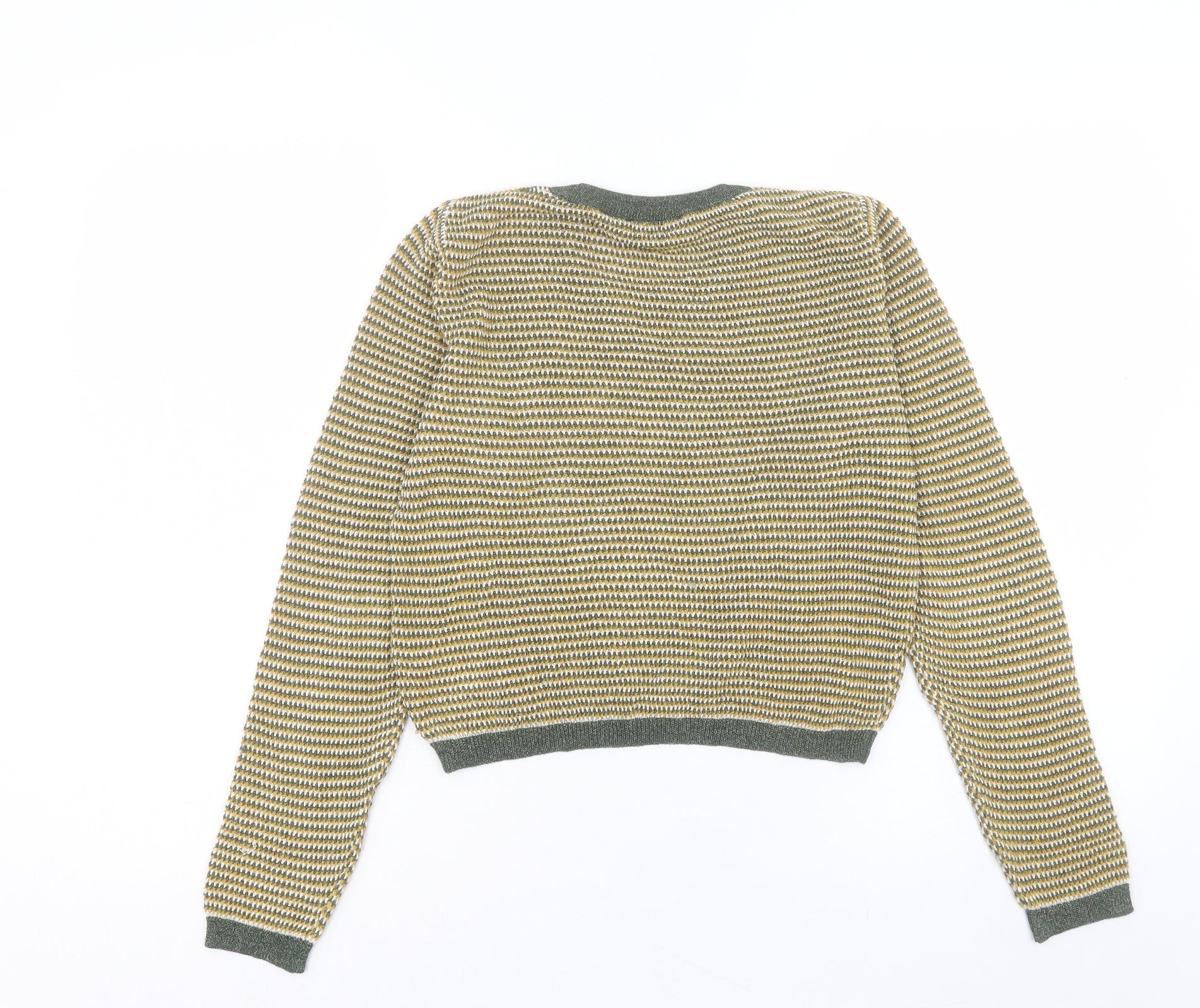 Womens Yellow Crew Neck Striped Acrylic Pullover Jumper Size L - Cropped