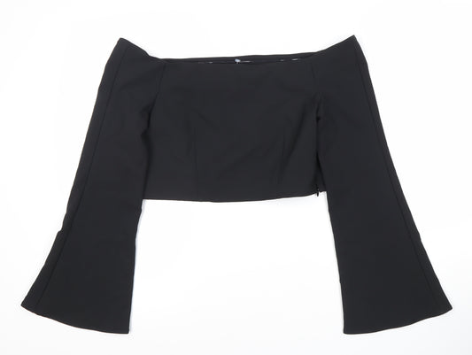 Zara Women Black Off Shoulder Long Sleeve Jersey Blouse - Size L