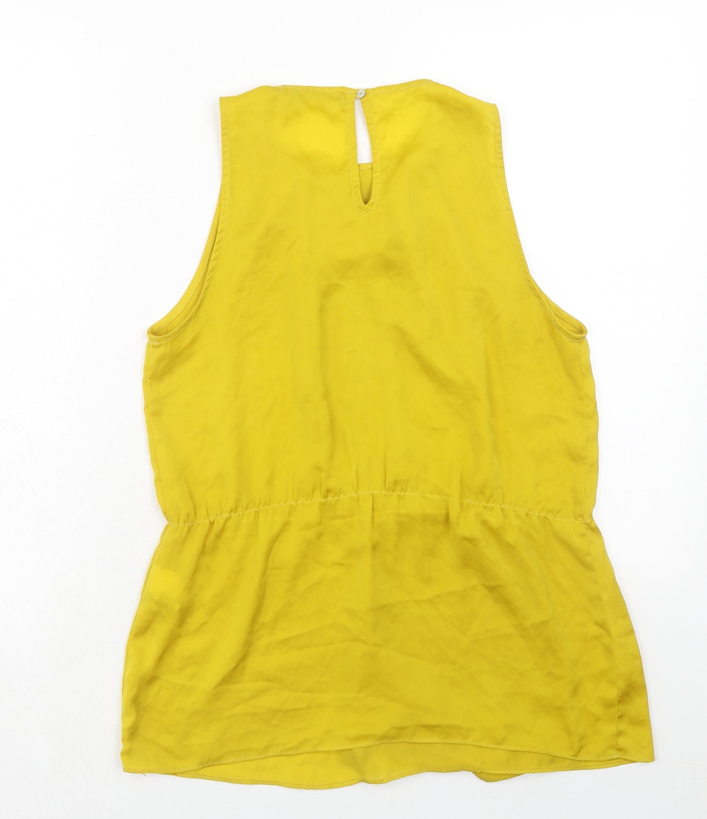 Womens Yellow Polyester Basic Blouse Size S Round Neck - Front Pleat Detail