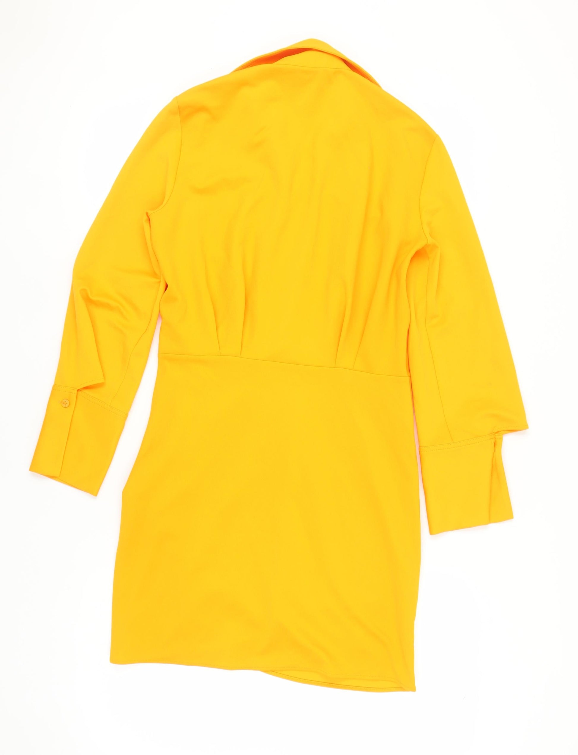 Women's Yellow Shirt Dress M Collared Long Sleeve