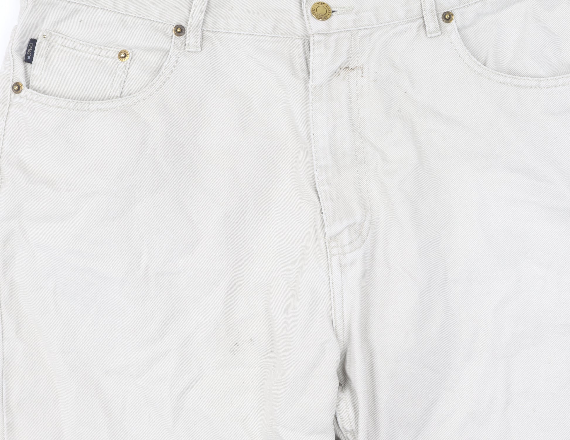 Enhance your wardrobe with these versatile Zenos Women's White Straight Jeans in Size XL. Crafted from 100% cotton, these jeans offer a comfortable and breathable fit, perfect for both spring and summer outings. Their classic straight-leg style provides a timeless silhouette, ensuring flexibility in styling with any top or footwear.The jeans come in a clean, light fabric wash, adding a fresh vibe to your outfit choices. Thoughtfully designed with a 5-pocket layout, these jeans ensure you have the necessary space to keep your essentials safe and within reach. The buttons accentuate the minimalist design, while the mid-rise fit ensures a flattering fit for all-day comfort.These denim jeans cater to a regular fit and are machine washable, promoting easy maintenance. As a vintage-free piece, they are suitable for contemporary tastes and trends. Although pre-loved, these jeans remain in good condition, with only slight signs of wear and minimal staining that can be easily treated.Zenos White Straight Jeans offer an unbeatable blend of quality, style, and practicality – a must-have addition for anyone seeking comfort without compromising fashion. Their understated elegance ensures they remain a staple piece, perfect for casual outings or more semi-formal events.