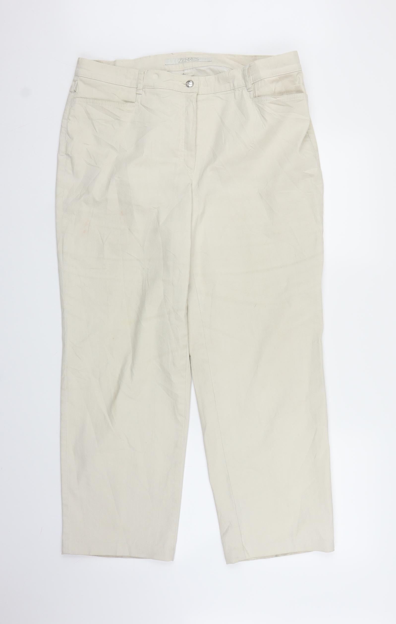 Zara Women Beige Linen Blend High Rise Trousers Size M